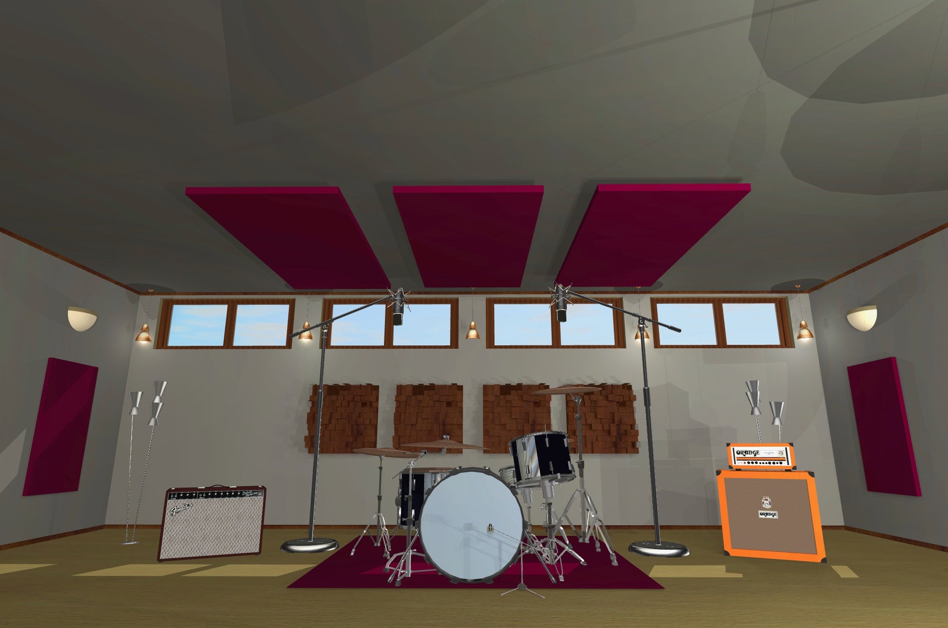 Sometimes, installing acoustical panels to the wall surfaces only doesn't provide adequate absorption to reach a desired acoustic environment. Some reasons for this include not having enough available wall space for acoustic treatments, hardwood or concrete floors that create standing reflections or high ceilings causing excess reverberation. Installing ceiling cloud panels is an ideal solution to make up for this. If a room is very large and/or has very high ceilings this can be a recipe for echoes and long sound decay times. Sometimes this is desired, think When The Levee Breaks - Led Zeppelin. Often times, a cleaner "dryer" recording room is sought instead. This will allow the mixing/mastering engineer to then add & control reverberations & effects simulated in a DAW or recording software.